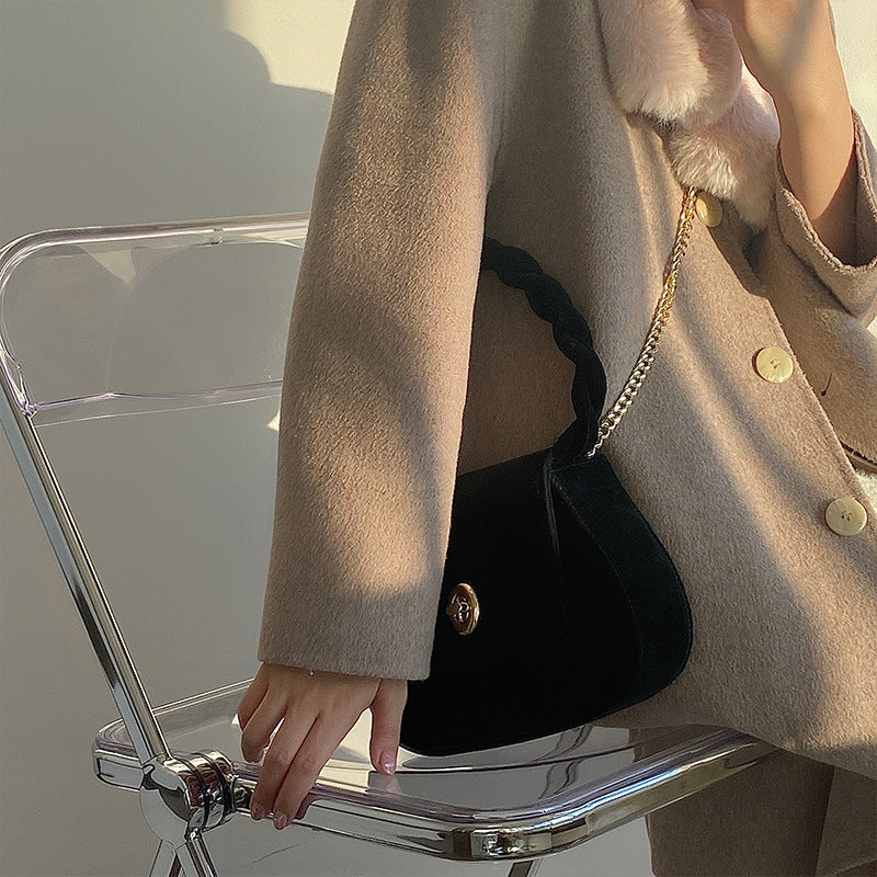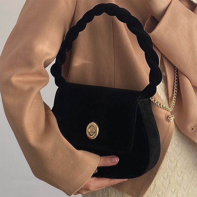 Sac Bénédicte, minaudière noir avec chaînette dorée amovible.
